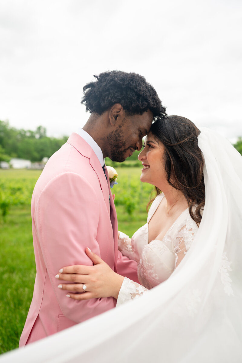 What a vibrant and deeply personal celebration for Danvy and Antonio at the beautiful Morais Vineyards in Bealeton, Virginia! The day was a beautiful testament to their cultures and their creative spirit. It began with an emotional first look where the couple honored Danvy’s heritage in stunning, traditional Vietnamese attire: a red áo dài for Danvy and a richly embroidered áo gấm for Antonio. This was followed by a change into their American wedding outfits, with Danvy wearing a deeply meaningful long-sleeved lace dress sewn by her mother, and Antonio sporting a custom pink suit, floral tie, and playful socks.