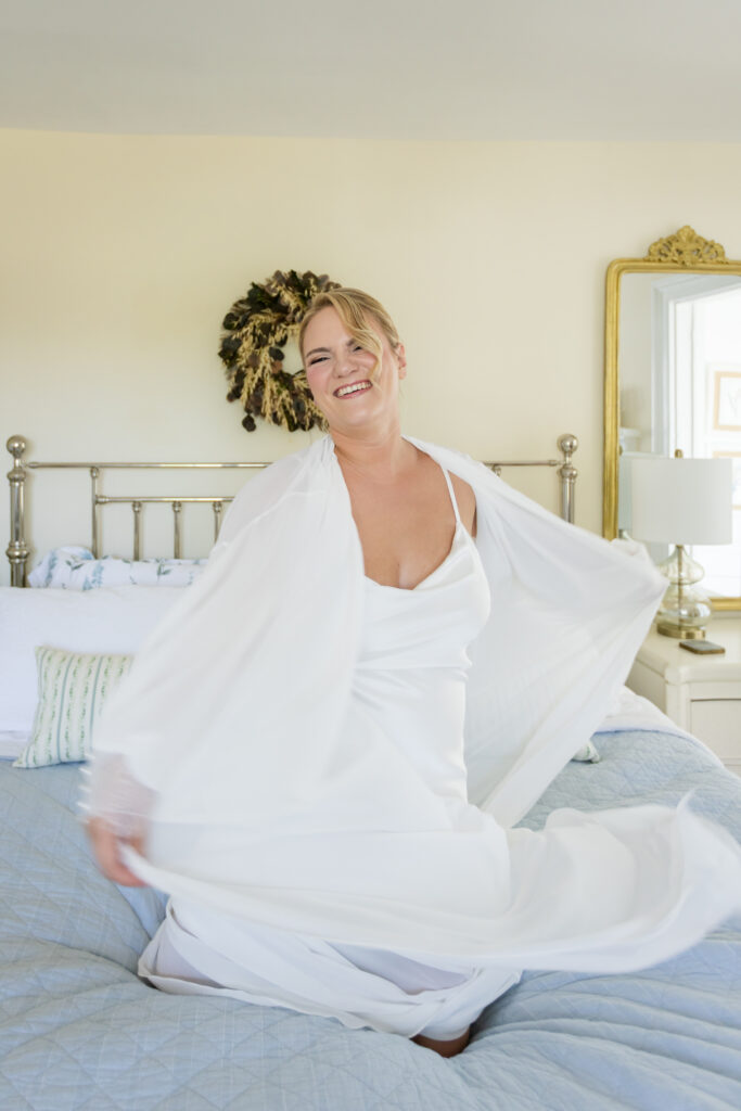 We started the day with Christen and her amazing bridesmaids, a group bubbling with infectious energy and laughter. The getting-ready suite was a whirlwind of hairspray, makeup, and happy anticipation. Christen herself looked absolutely radiant, especially in her stunning, flowy robe, truly giving off those elegant Glinda from “Wicked” vibes!