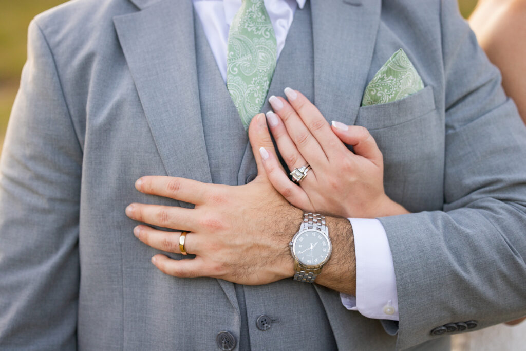 After some fun shots, it was time for Christen to step into her exquisite paisley wedding dress, a truly unique and beautiful choice. And in a perfect touch of coordination, Brent donned a handsome green paisley tie, subtly mirroring his bride’s stunning attire. Talk about a couple with impeccable style!