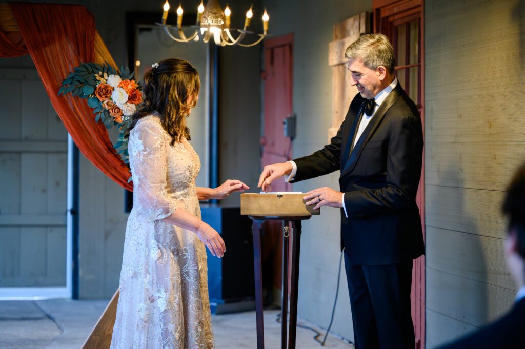 The centerpiece of their vows was a profoundly romantic gesture: they performed a wine box ceremony. They sealed a bottle of fine wine and handwritten love letters to each other in a box, which they’ll open on their five year anniversary. This detail is a beautiful testament to their enduring commitment. It is a perfect example of the unique, personal touches we love to capture at Melissa Cook Weddings.