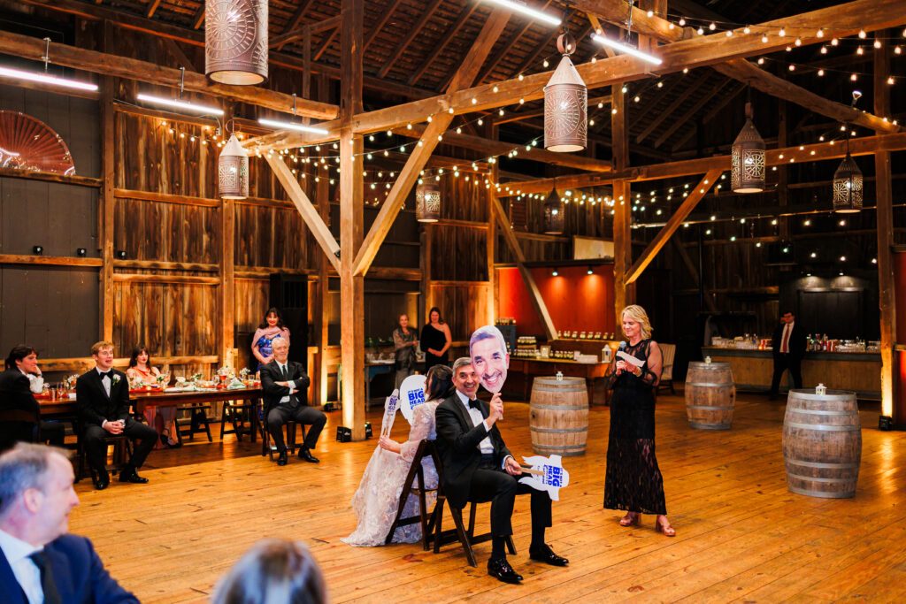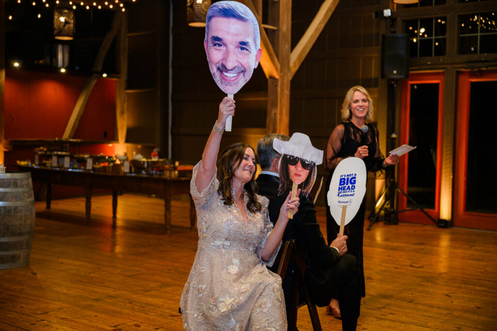 Dinner was followed by playful moments that kept the energy high. Instead of the traditional “shoe game,” the couple added their own hilarious and personal twist. They held up blown-up pictures of each other to answer the questions!