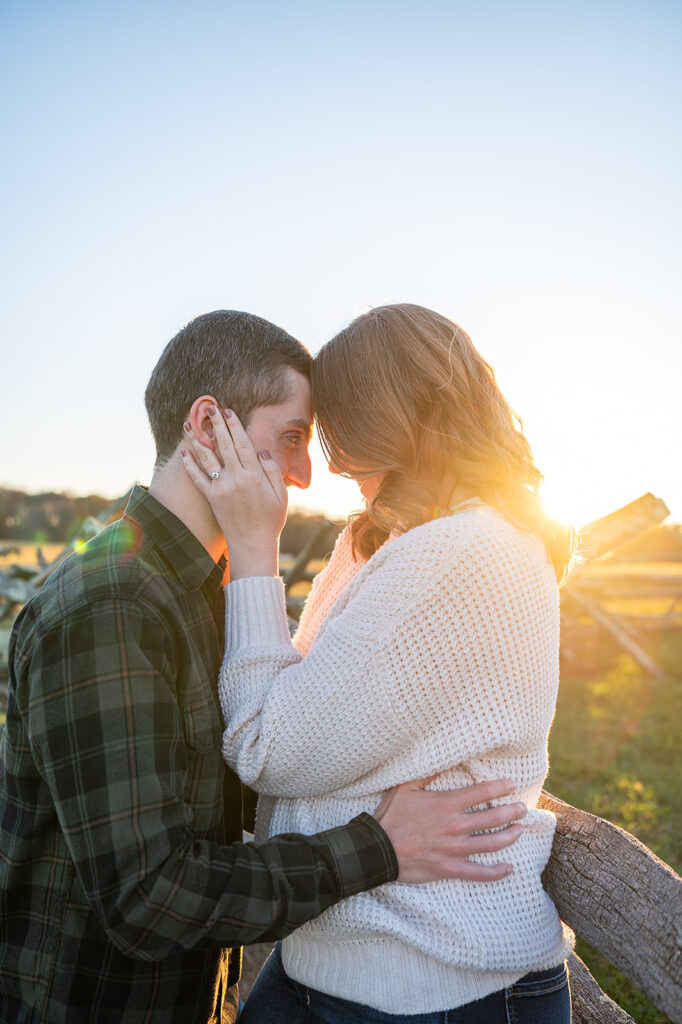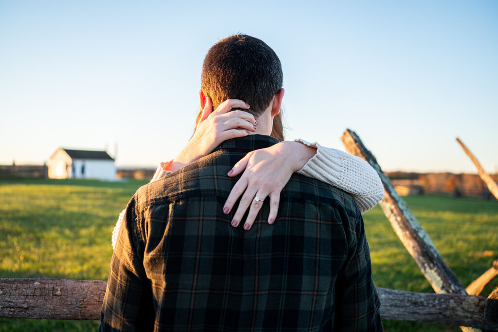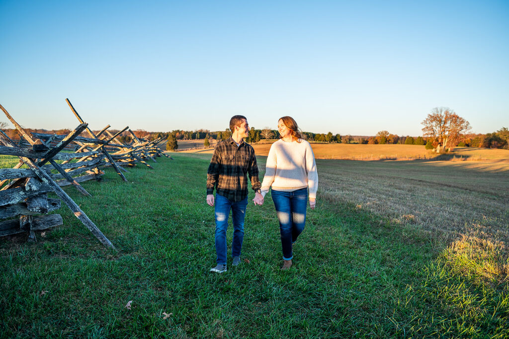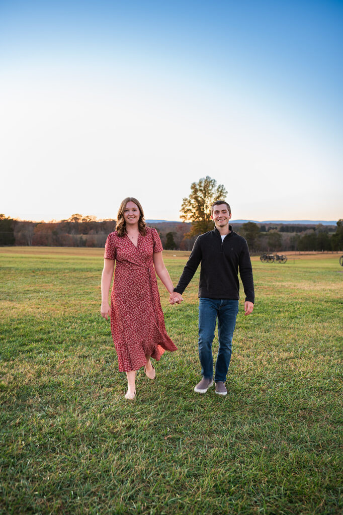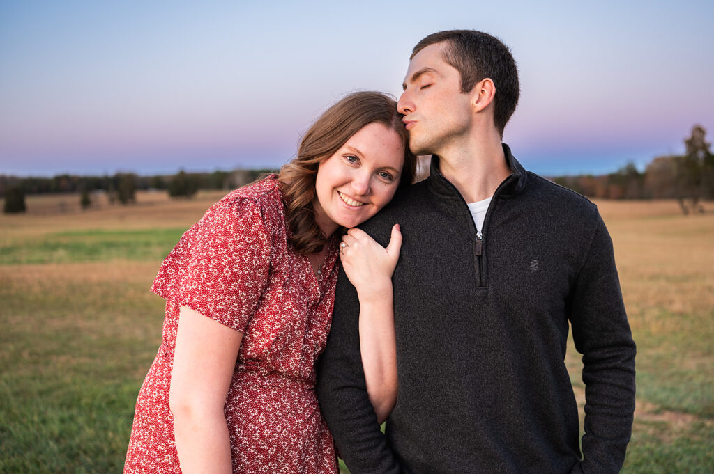 I met Andrea and Ovi at Manassas Battlefield Park for a stunning sunset engagement session. Their deep love was undeniable and truly shone through every moment of the session! They looked absolutely incredible after an outfit change, and I kept shooting right up until blue hour. What is blue hour? It’s the period of twilight when the sun is far below the horizon and the indirect sunlight takes on a beautiful, cool, deep blue tone; perfect for romantic, dramatic photos! I even managed to capture a few lovely images with the moon in the background. What a memorable session to capture their journey to the altar!