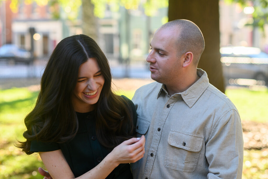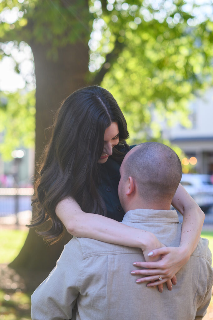 The stately courthouse lawn provided a perfect contrast to the busy street. The huge, mature trees created a beautiful canopy of soft, even light, ideal for those sweet, intimate portraits. Brianna and Michael were so much fun and had such an easy time just being themselves together. Getting to chat with them while moving between spots built a great level of comfort and rapport, ensuring they’ll be completely relaxed in front of the camera on their wedding day!