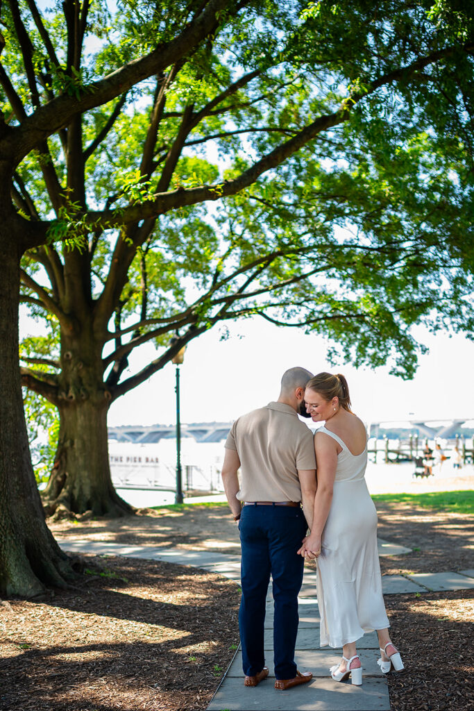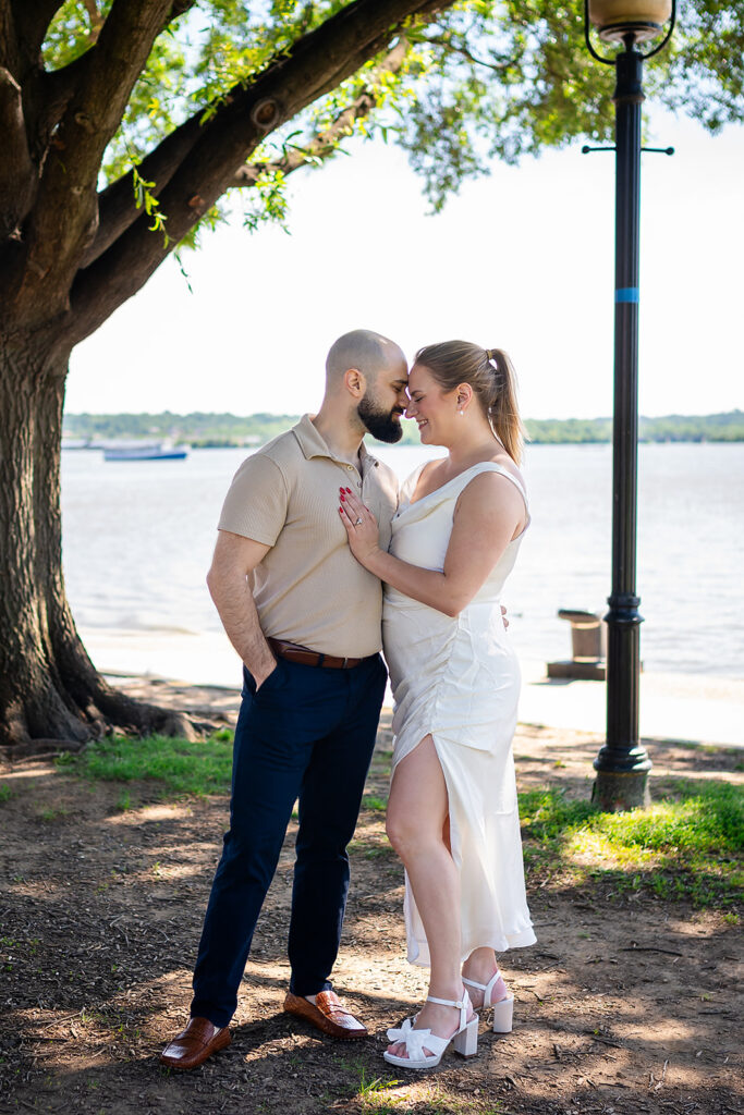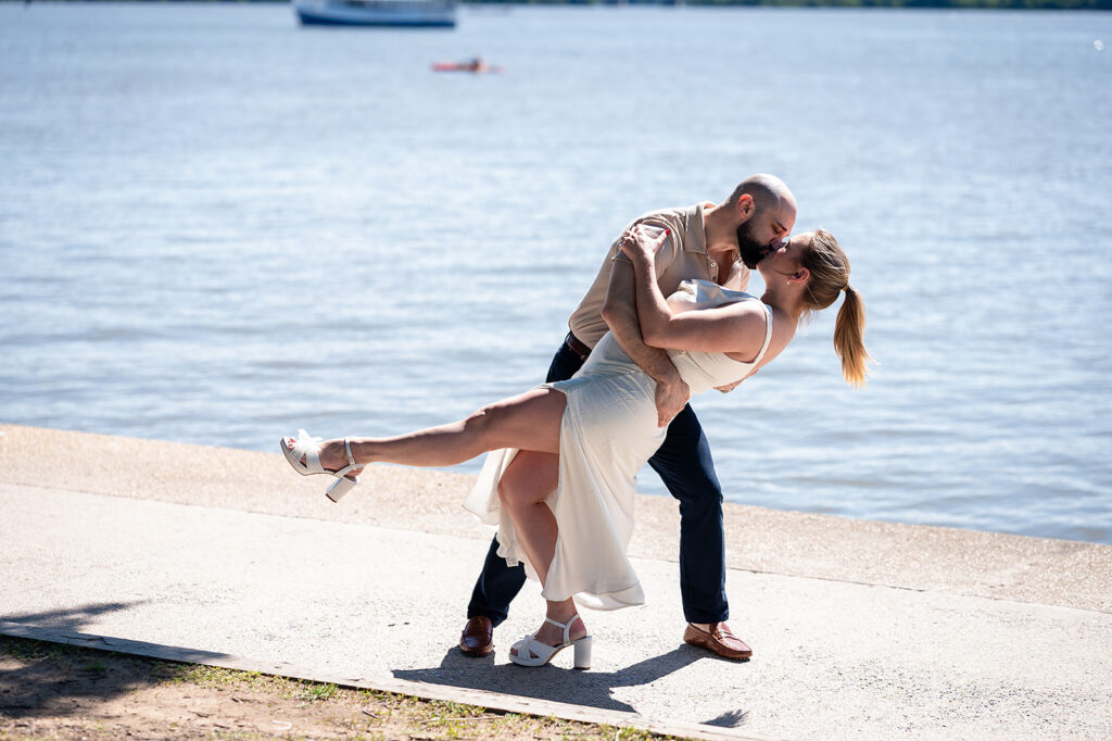 The glass-ceiling room was truly a photographic gem. The natural light streaming through the metal grid created dramatic shadows and leading lines that added a modern, graphic element to the portraits. Seeing Christen and Brent so comfortable and joyful in this beautiful setting was wonderful. This session provided the perfect mix of high-end style inside and a classic Alexandria waterfront vibe outside. I can’t wait to capture their incredible style again on their wedding day!