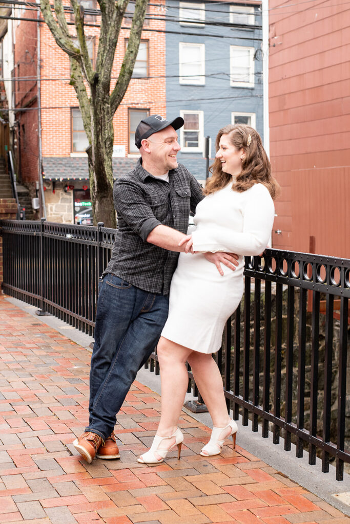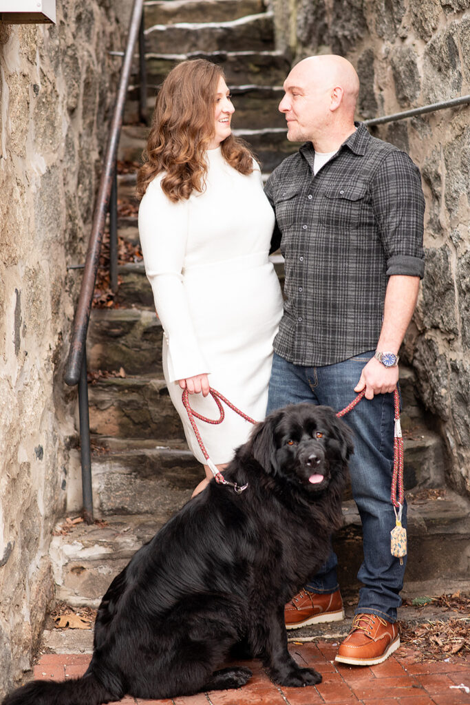 We met in Ellicott City for Claudia and Eddie’s engagement session. They brought their enormous pup and I got some amazing photos. I got a photo in front of the Ellicott City bridge, and then walked through town to find spots that were sentimental to them. I found some murals and some really cool stairs to take photos at. This was a great way to get to know them before their wedding.