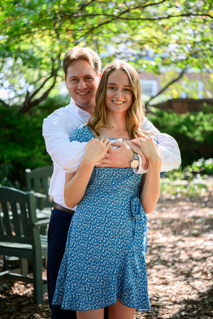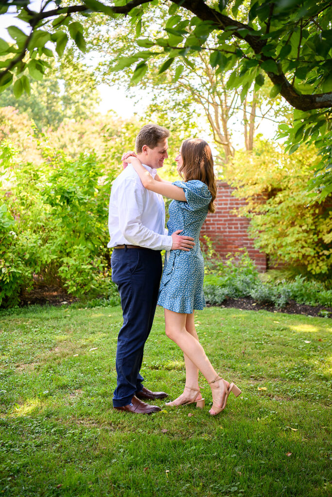 The property at River Farm provided such a stunning and diverse backdrop for their session. From the lush, structured garden beds up front to the impressive colonial architecture of the main house, every corner offered a touch of classic elegance. Choosing to hold your engagement session at your wedding venue is a fantastic idea because it allows you to visualize your big day in the spaces you’ll be using, and it gives us time to scout out unique photo spots we might miss on the actual wedding day!