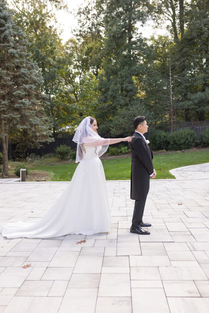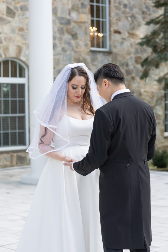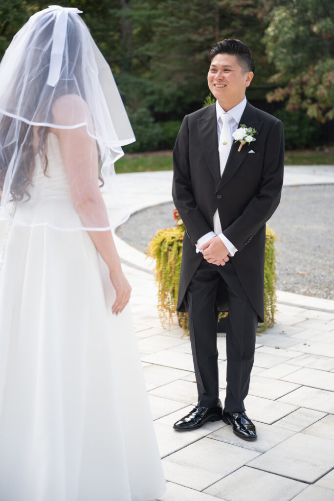 We kicked off the day with a beautiful first look. The emotion on both of their faces was simply perfect; a quiet, intimate moment before the whirlwind began. Afterward, we made the most of the estate’s incredible setting for their couple’s portraits. The light was just right, bathing the grounds in a beautiful, soft glow that truly highlighted their love.