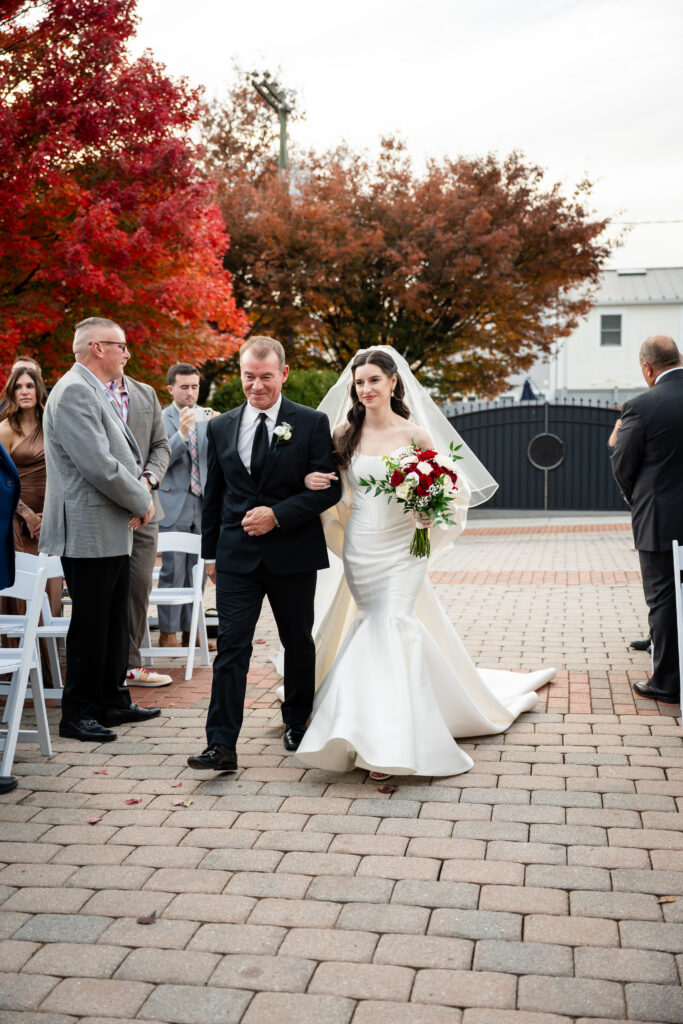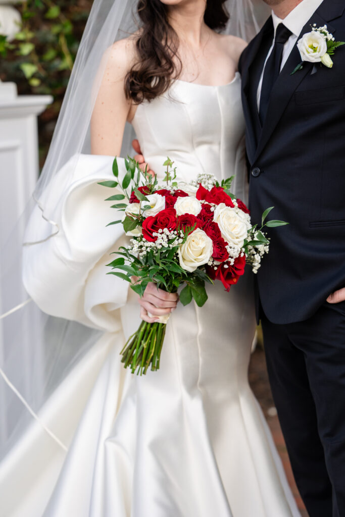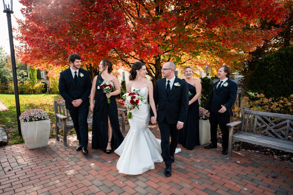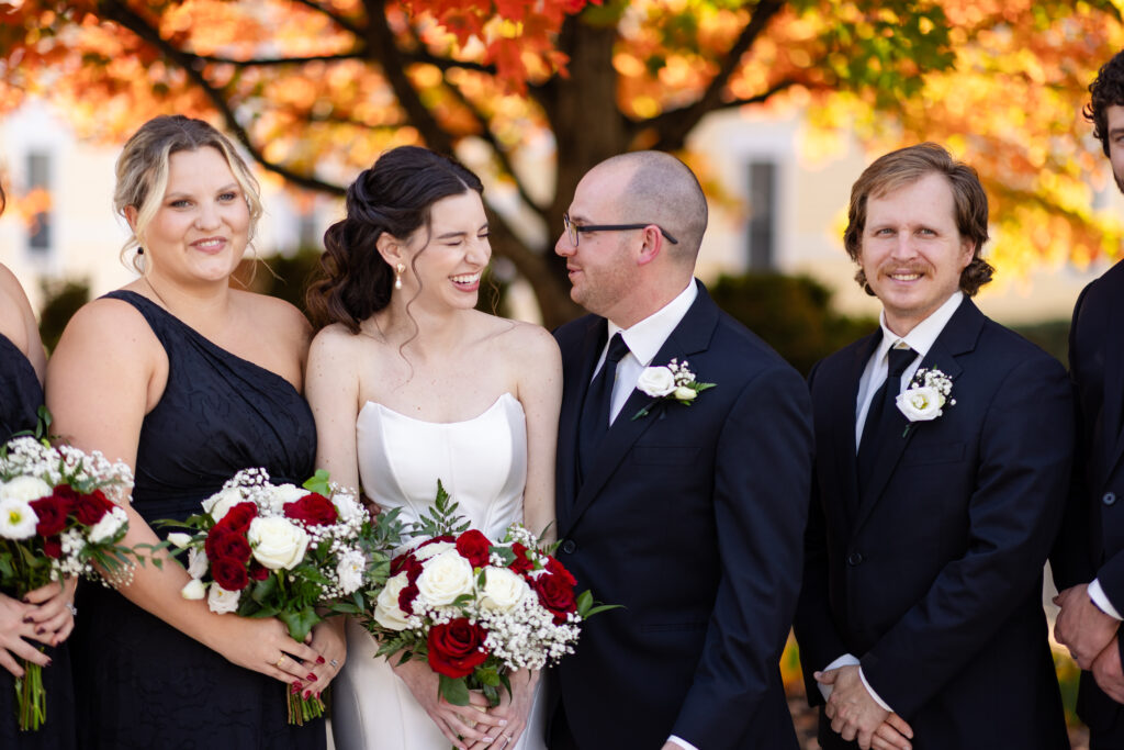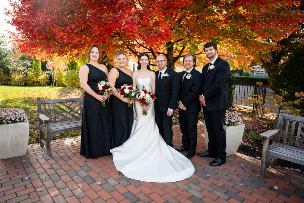 The decision to do a First Look was incredibly beneficial for the entire timeline! Immediately after their private moment, we were able to transition seamlessly into wedding party photos, family photos, and the couple’s portraits around the beautiful property. This strategy meant that the formal portraits were completed before the ceremony, freeing up the couple and their loved ones to head straight to cocktail hour right after the “I do’s”; a major win! For the family portraits, we were lucky enough to use the breathtaking red tree in the back of the property as a vibrant, unforgettable backdrop.